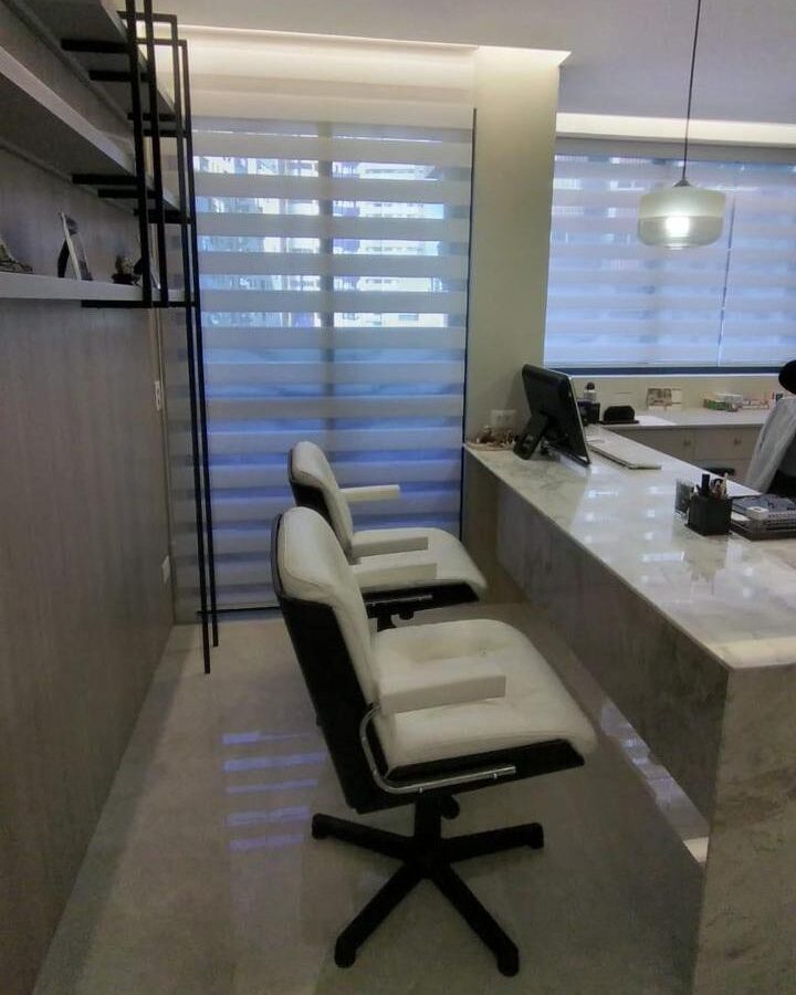 Seu tecido é fácil de limpar, resistente e possui excelente caimento. A estrutura do rolô pode ser finalizada com box superior em alumínio para acabamento mais clean e discreto.
