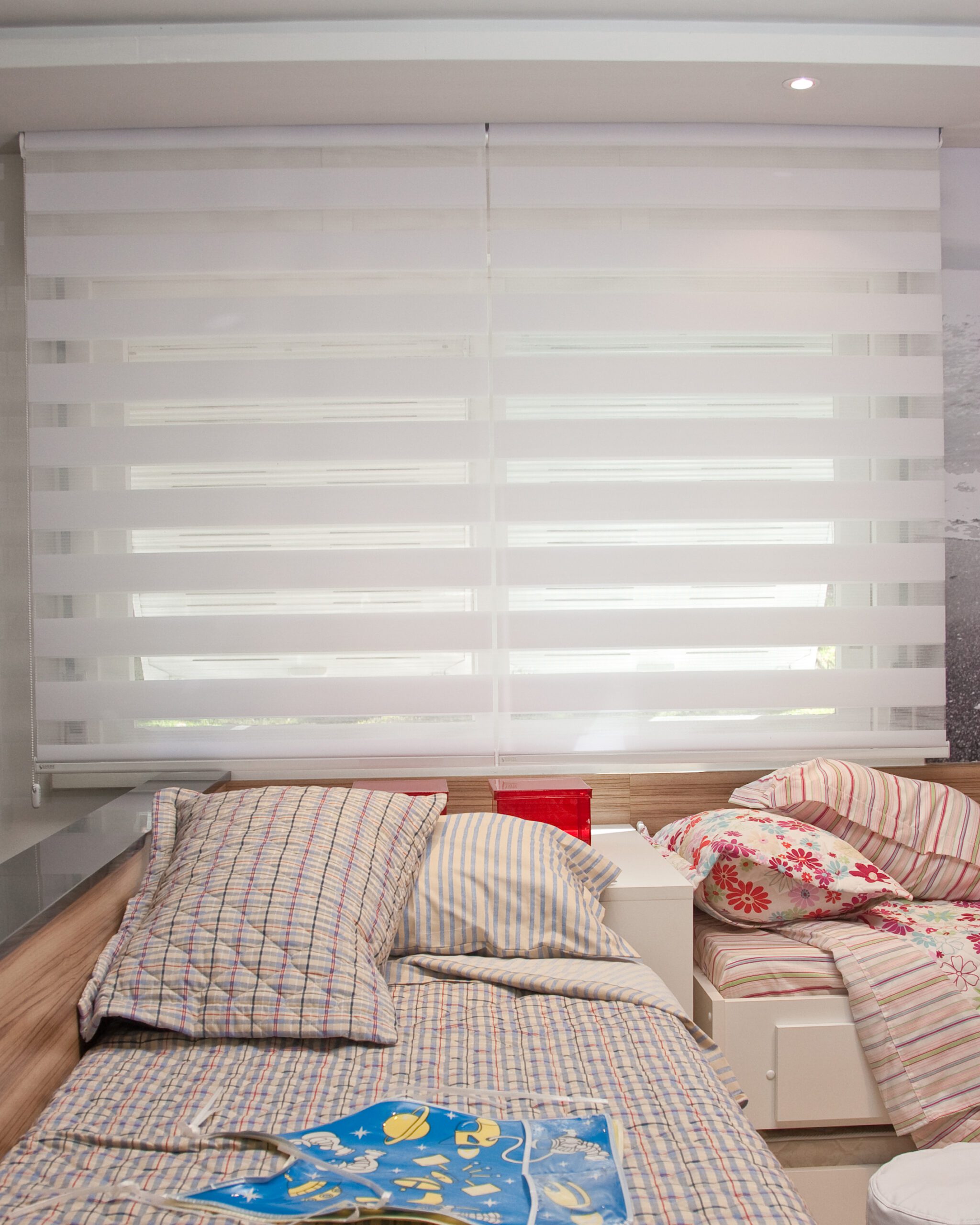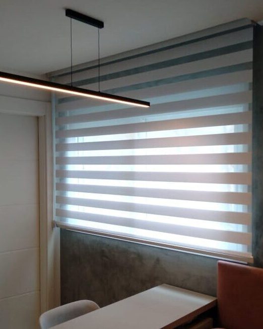 A cortina Double Vision combina elegância, inovação e versatilidade em um único produto. Também conhecida como cortina Zebra, esse modelo moderno alterna faixas horizontais de tecido translúcido e opaco, permitindo um controle preciso da luminosidade e da privacidade com um simples movimento.