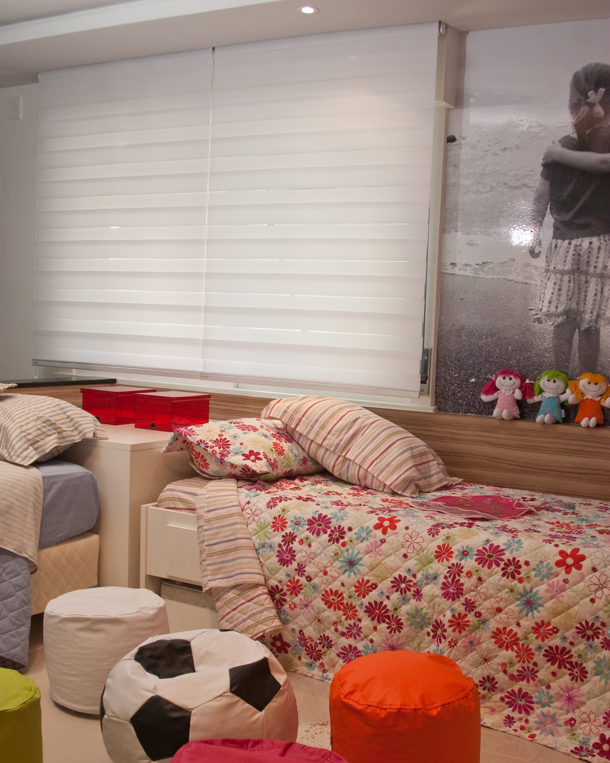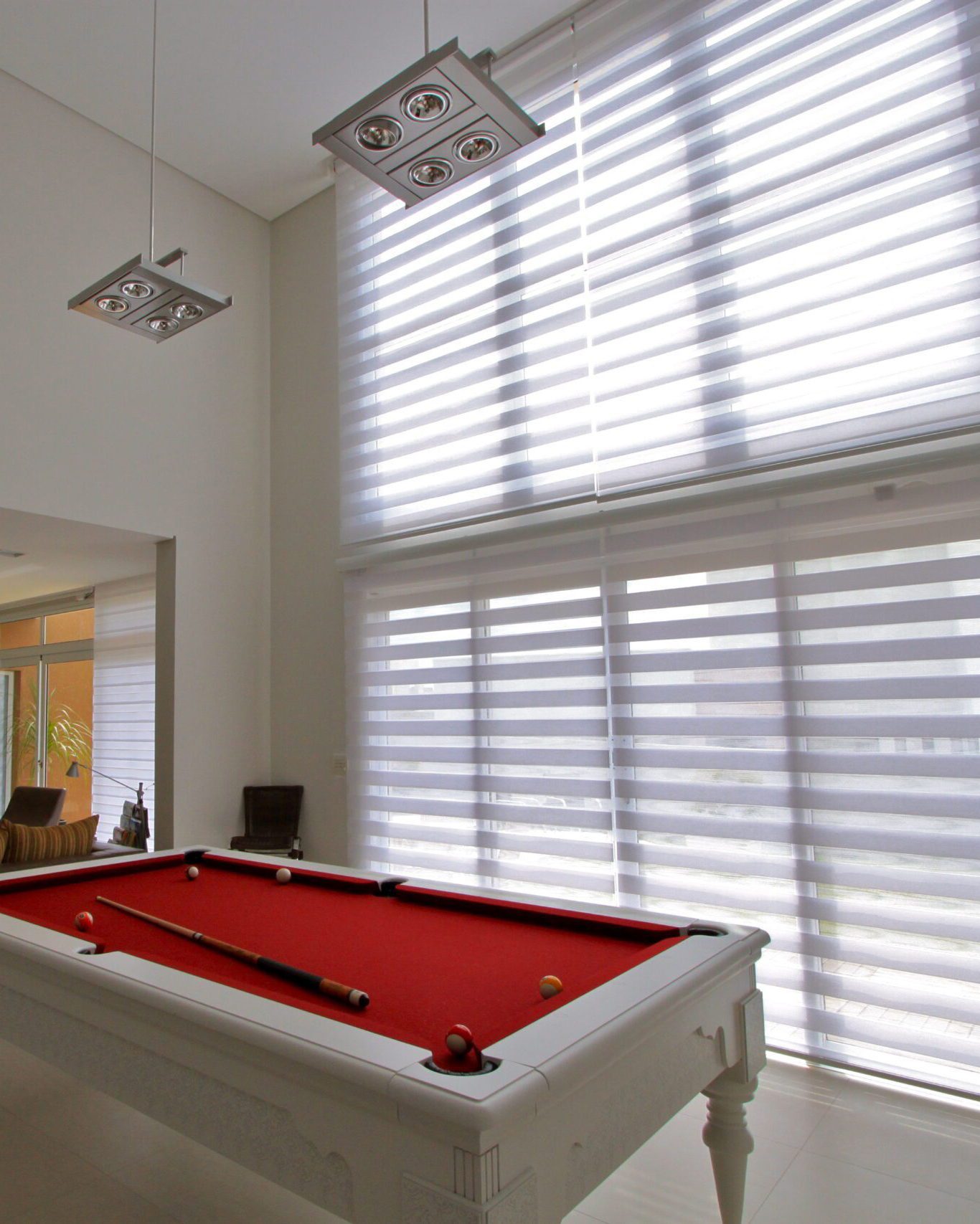 Ideal para salas, quartos, escritórios e ambientes integrados, a cortina Double Vision oferece um visual contemporâneo que valoriza projetos de arquitetura minimalista e design de interiores sofisticado. Quando as faixas opacas se sobrepõem, garantem privacidade; quando alternadas com as translúcidas, proporcionam entrada suave de luz natural.